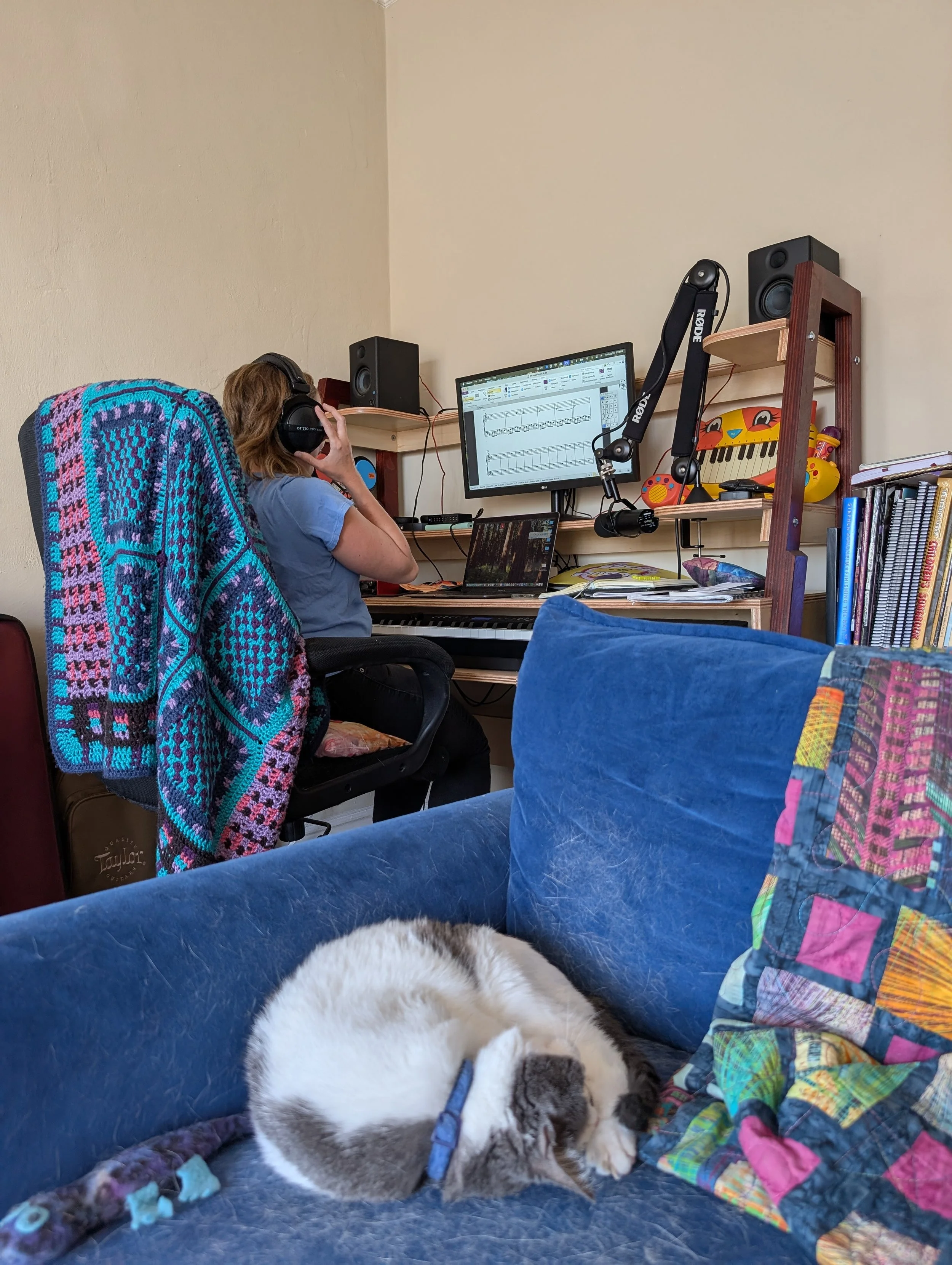 In May of 2025 we moved out to the Bay Area to be closer to my in-laws. I am getting used to California life, gigging around the Bay Area music improv scene, and looking out for cool composition and sound design projects in film, theater, and video games. Also, my father-in-law made me this awesome desk!